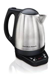 Amazing Kettle!. Looked around comparing many electric kettles and i am so glad i chose hamilton beach. It boils up to 1. 7 liters of water faster than my kitchen stove, has 5 programmed water temps to select along with a custom temp you can set yourself. It holds the water at your temp for an hour with a countdown timer and it's programmable for the start time! it does everything and heats faster than the speed of light and its stainless too! very, very satisfied. And i found it for $39. 99. 6 month review: using it every day, heats just as fast as new, love the programmable nature of the kettle. I never boil water on my stove anymore. .